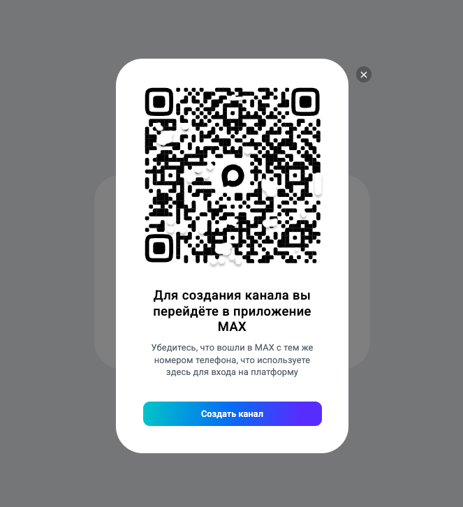 - Отсканируйте QR-код или нажмите кнопку — вы перейдёте в бота для создания каналов в MAX