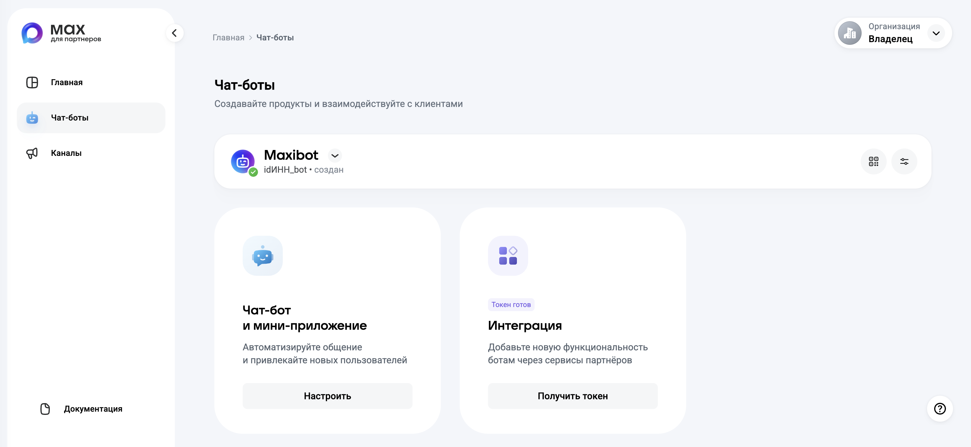 После создания бота и прохождения модерации вы также сможете подключить мини-приложение и сервисы партнёров (чат-платформы поддержки, конструкторы ботов, CRM-системы)