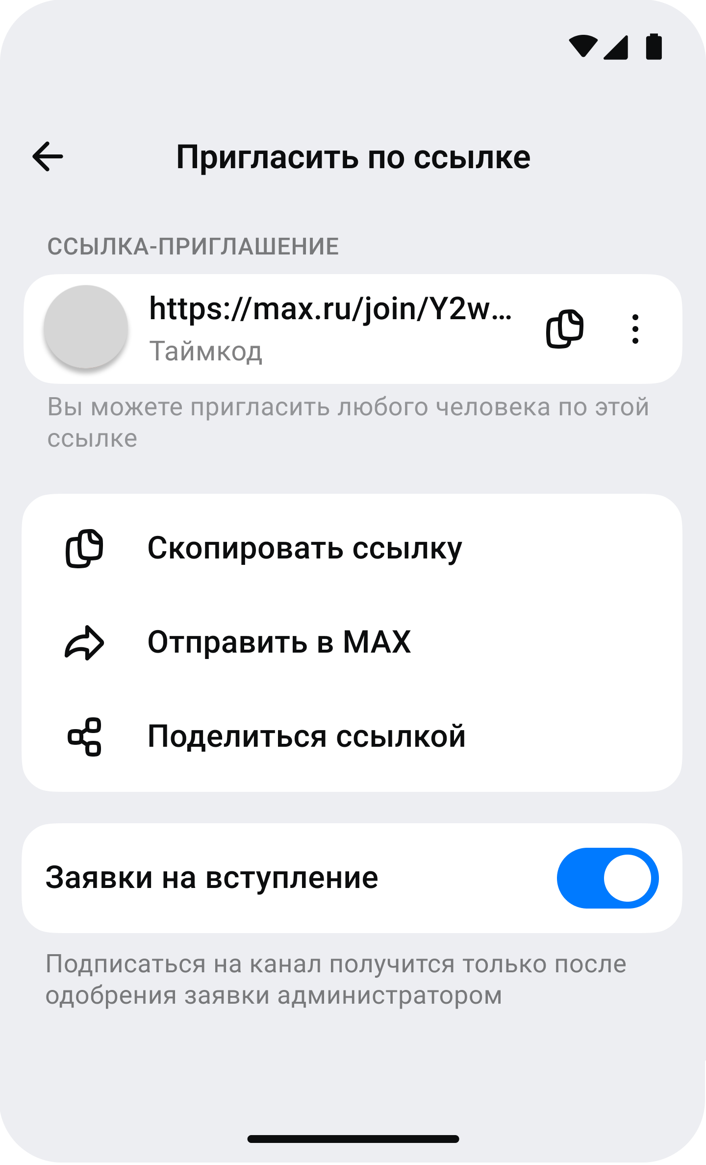 Для дополнительной безопасности в приватном канале можно включить опцию заявки на вступление. В этом случае пользователи смогут подписаться на канал только после согласования заявки администратором