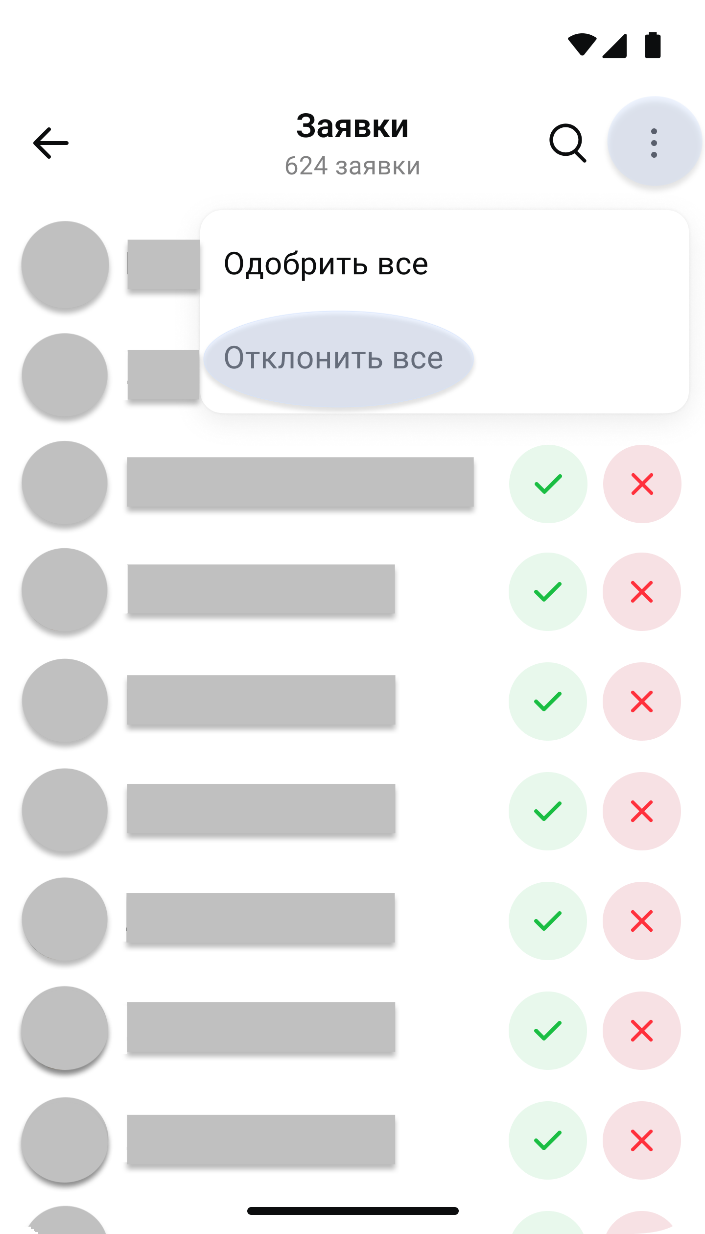 Если вы хотите одобрить или отклонить все заявки сразу: